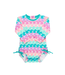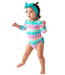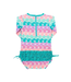 A wonderful addition to your little girl's swimwear, this One Piece Rash Guard is comfort and style rolled into one. Unlined with snaps at bottom that make for easy changing. Made with sun protected fabric for all day protection and comfort.