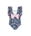 This Butterfly Swimsuit with stylish sleeves is perfect for a vacation or a day in the water. This one piece is made with UPF 50+ sun protected fabric for optimum play time in the water. With playful colors it's sure to be fun.